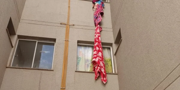 Adolescente faz ‘tereza’ com cobertas para tentar fugir, mas cai do 3º andar de prédio