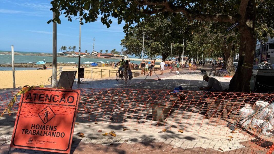 O trecho que vai da Pracinha dos Apaixonados até o Siribeira está recebendo novo revestimento em todo o piso. A escolha do material traz mais segurança e durabilidade, substituindo o antigo, que além de estar desgastado já não contava mais com peças de reposição. “Optamos por um piso moderno, antiderrapante e mais seguro para moradores e turistas que circulam pela orla”, explicou o secretário municipal de Obras, Marcelo Cirino.