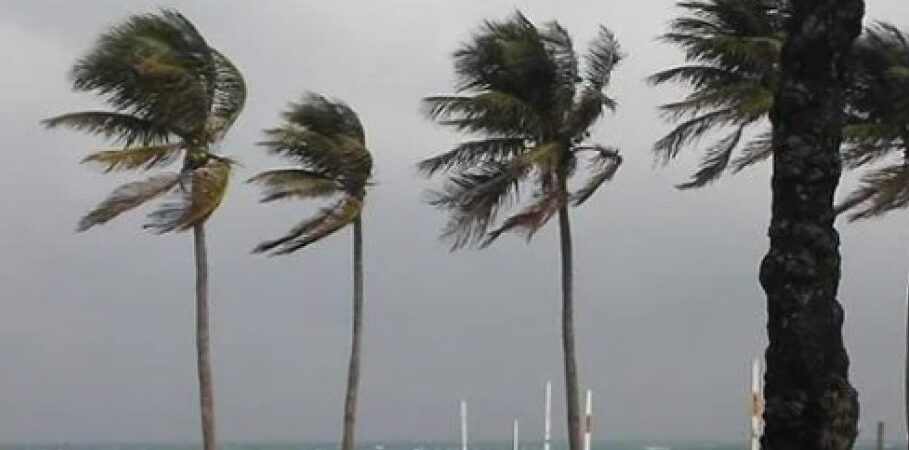 Com ele, são previstos ventos com intensidade variando entre 40 km/h e 60 km/h. Além de baixo risco de queda de galhos de árvores.