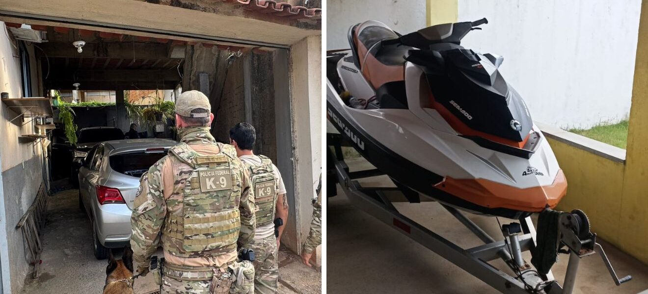 Em São José de Mipibu, no Rio Grande do Norte, foram apreendidas armas de fogo, munições, valores em espécie, além de diversos carros de luxo utilizados pelo grupo criminoso.
