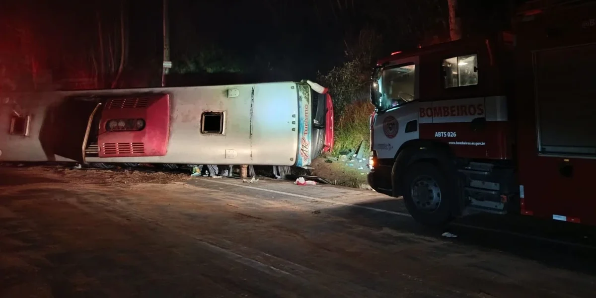 Duas mulheres morreram após um ônibus de turismo de Minas Gerais tombar no km 149 da BR 262, em trecho conhecido como Curva da Ferradura, em Ibatiba, na Região do Caparaó, no Espírito Santo, por volta das 20h50 de domingo (23). Segundo a Polícia Rodoviária Federal (PRF), o veículo havia saído de Guarapari (ES) e seguia para Contagem (MG) quando o motorista perdeu o controle da direção e saiu da pista. O ônibus estava com 50 ocupantes – 48 passageiros e dois motoristas. Uma das vítimas era esposa de um dos condutores. O número de feridos não foi divulgado.