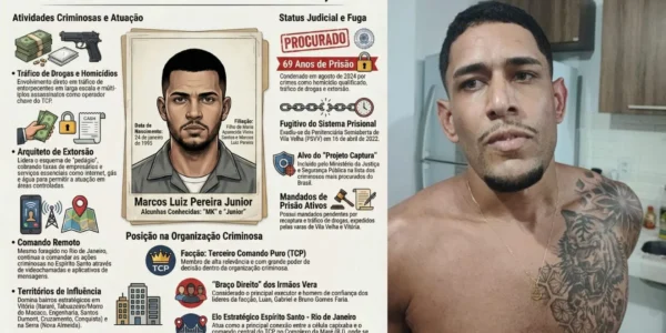 Ele “criou” e comandava um esquema de extorsão a empresários no Espírito Santo, era “braço direito” dos irmãos Vera e era um dos figurões da facção Terceiro Comando Puro (TCP), do Rio de Janeiro. Marcos Luiz Pereira Junior, conhecido como “MK”, era um…