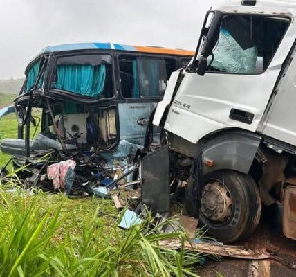 Policiais ficam feridos após acidente entre carro da PM e carreta